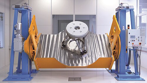 - Lifting and tilting equipment with a load capacity of 5 tons allows qualifying of positioning systems at any angle with application-specific alignment and load.