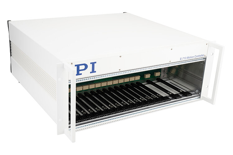 The modular concept makes it possible to assemble E-713 Motion Controllers exactly according to customer requirements. An E-713 Motion Controller controls in a coordinated manner up to 16 axes with various drive types. This involves the use of state-of-the-art control and linearization algorithms. Optional digital and analog interfaces support motion automation.