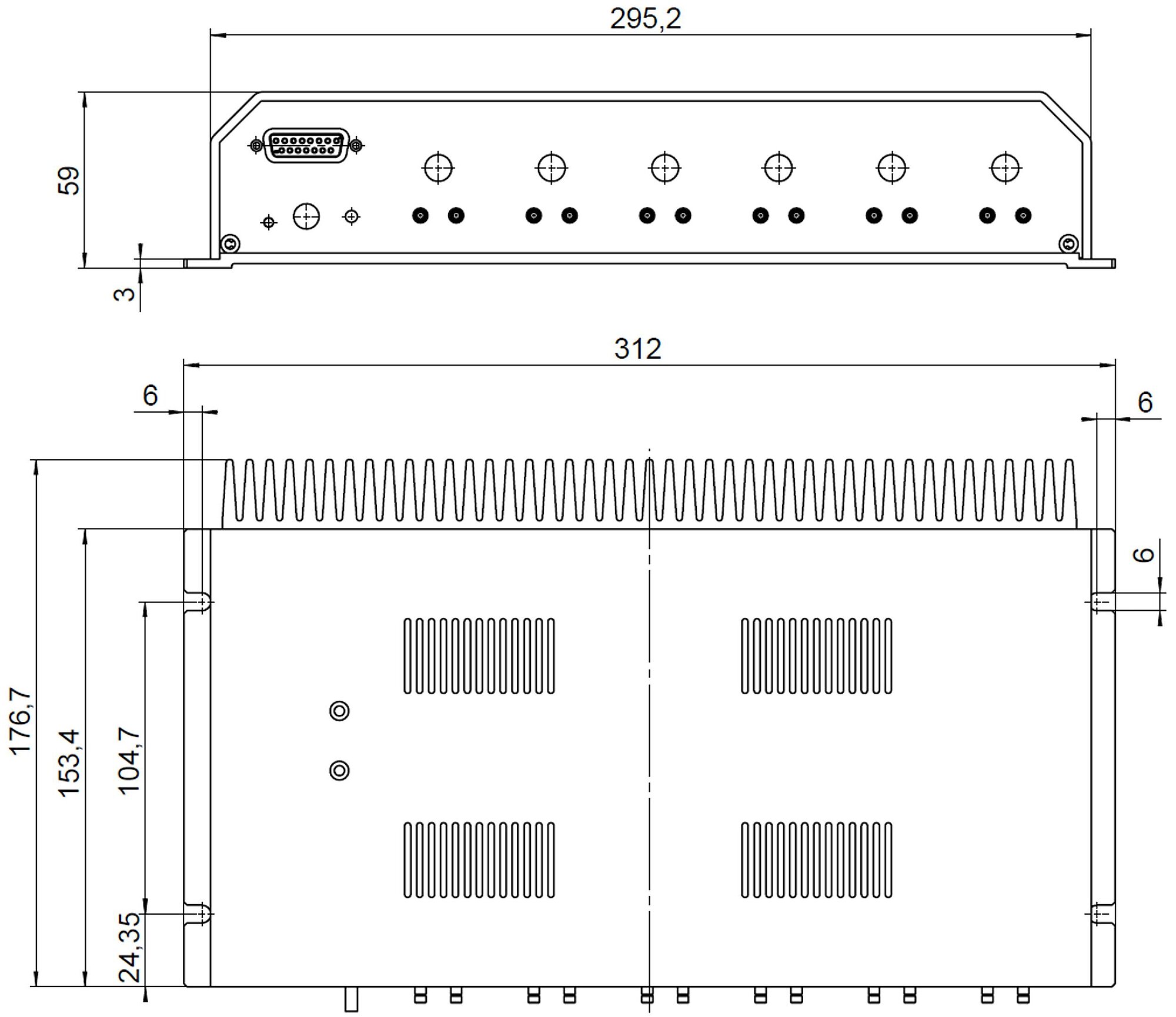Control signals, monitor signals: SMB. Voltage outputs: D-sub 15 (f)