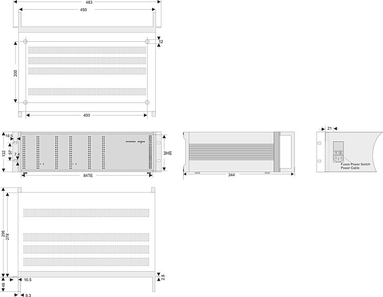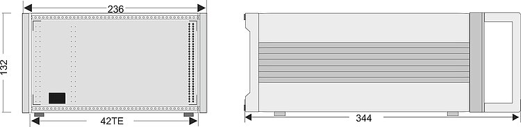 Dimensions | 21 HP/3 U | 236 × 132 × 296 mm (without handles) / |