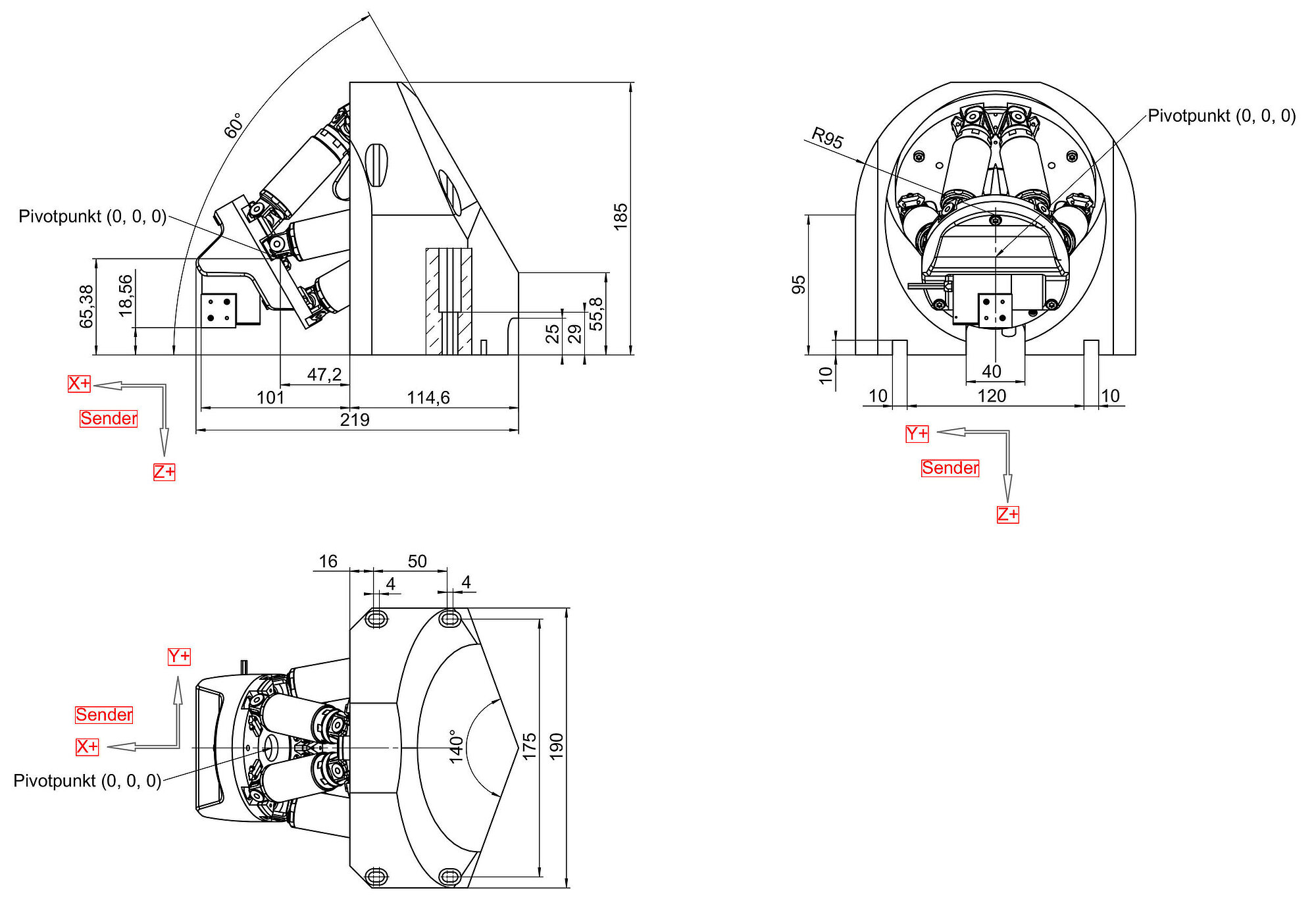 Rotation range in θX, rough positioning | 29 ° | 29 ° | 20 ° | |