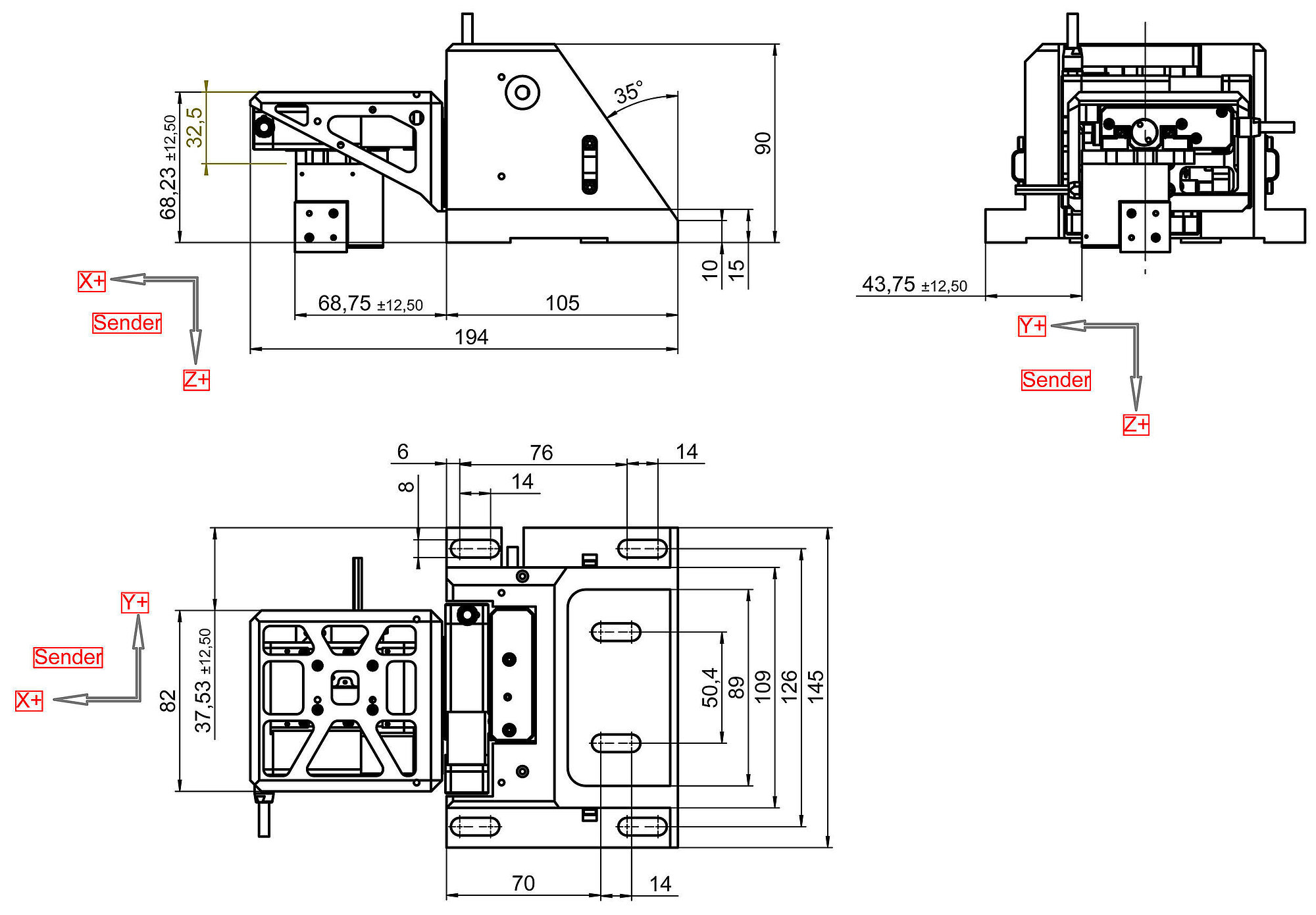 Active axes, rough positioning | X ǀ Y ǀ Z | X ǀ Y ǀ Z | |