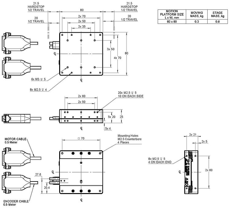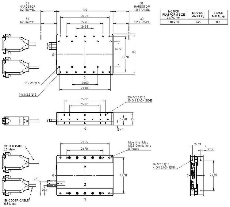 | Motion platform dimensions | 80 × 80 mm | 110 × 80 mm | 170 × 80 mm | |