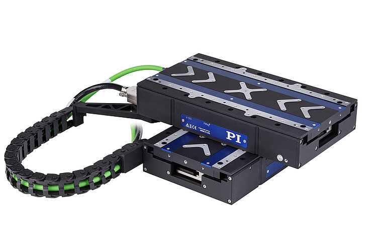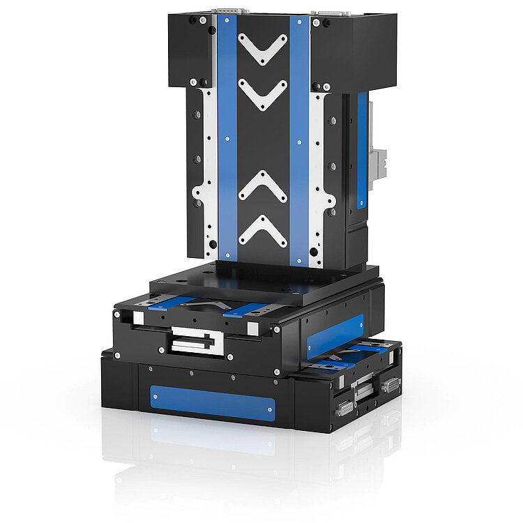 Position measuring is performed with the highest accuracy directly at the motion platform so that nonlinearity, mechanical play or elastic deformation have no influence on position measuring. Position measuring is performed with the highest accuracy directly at the motion platform so that nonlinearity, mechanical play or elastic deformation have no influence on position measuring. The stages are equipped with absolute encoders. They supply explicit position information that enables immediate determination of the position. This means that referencing is not required during switch-on, which increases efficiency and safety during operation.