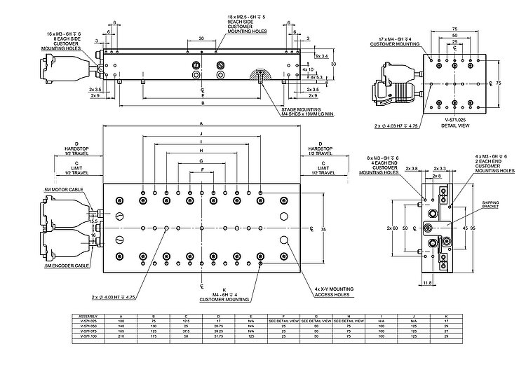 | Positioning | V-571.025A1 | V-571.025B1 | V-571.050A1 | V-571.050B1 | V-571.075A1 | V-571.075B1 | V-571.100A1 | V-571.100B1 | Tolerance |