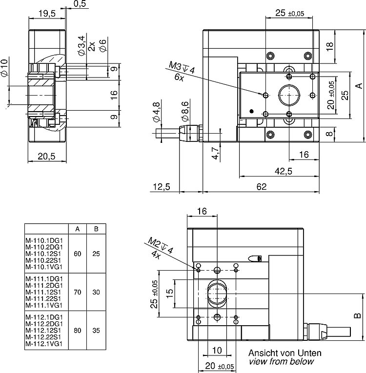| Positioning | M-110.1DG1 | M-110.2DG1 | M-110.12S1 | M-110.22S1 | M-111.1DG1 | M-111.2DG1 | M-111.12S1 | M-111.22S1 | M-112.1DG1 | M-112.2DG1 | M-112.12S1 | M-112.22S1 | Tolerance |