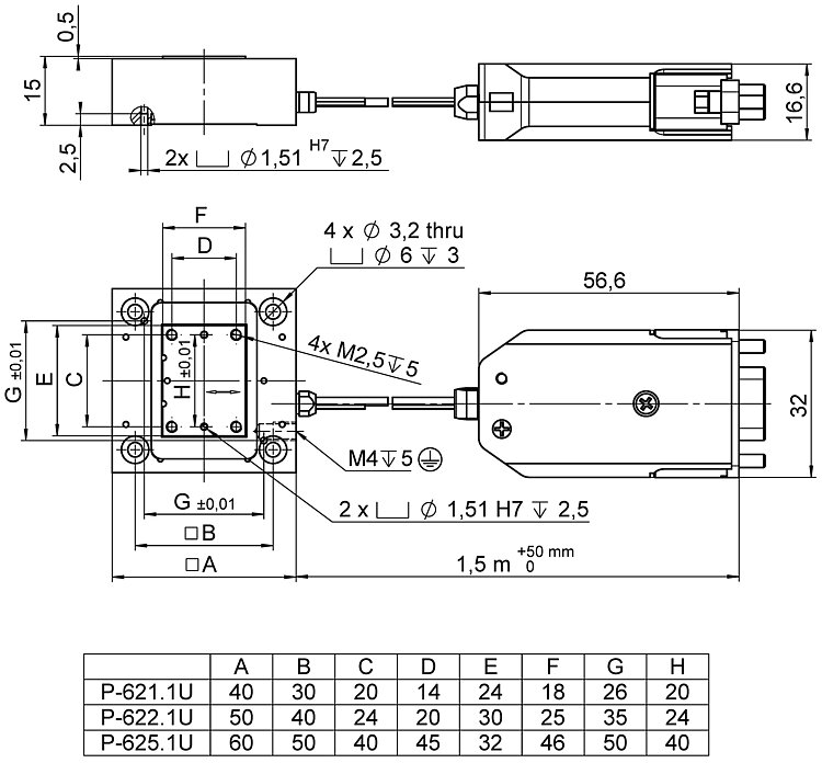 | Miscellaneous | P-621.1U | P-622.1U | P-625.1U | Tolerance |