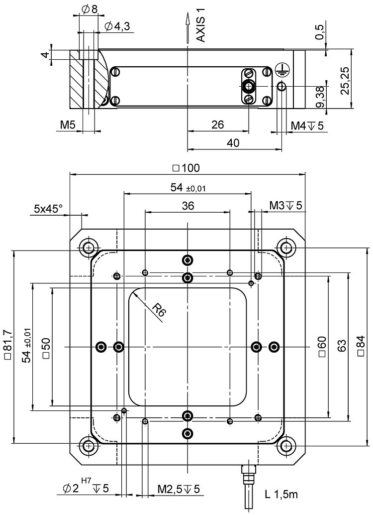 High dynamics Z nanopositioning stage; 100 µm travel range; capacitive, direct position measuring; D-sub 7W2 (m); 1.5 m cable length