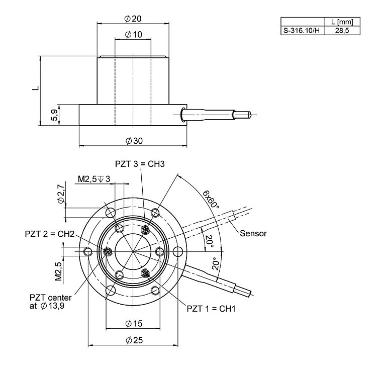 S-310, S-311, S-314, S-315, S-316 Piezo Z / Tip / Tilt Scanner