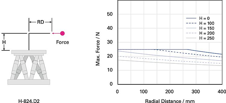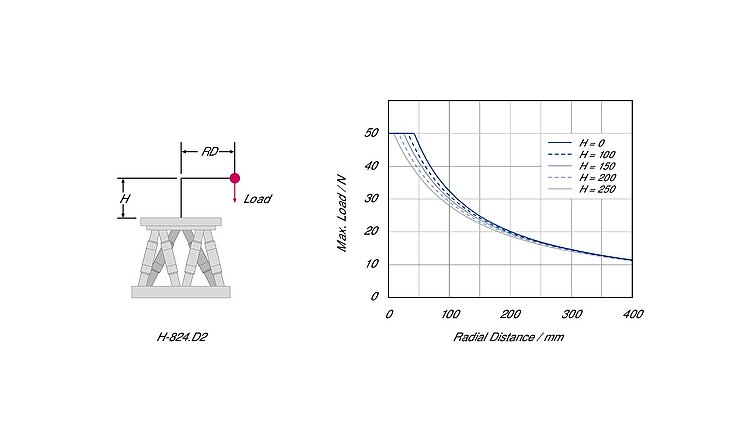 Compact hexapod; direct drive; 5 kg payload; 25 mm/s maximum velocity; D-sub connector. Connecting cables are not included in the scope of delivery and must be ordered separately.