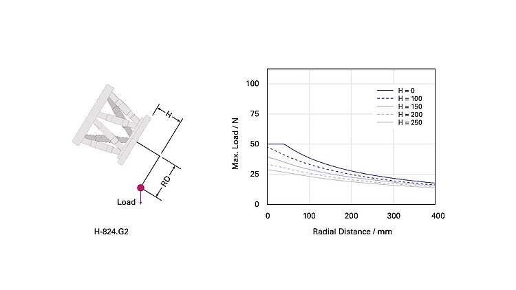 The simulation software simulates the limits of the workspace and payload of a hexapod. Therefore, even before purchasing, you can check whether a particular hexapod model can handle the loads, forces, and torques occurring in an application. For this purpose, the simulation tool takes the position and motion of the hexapod as well as the pivot point and several reference coordinate systems into account.