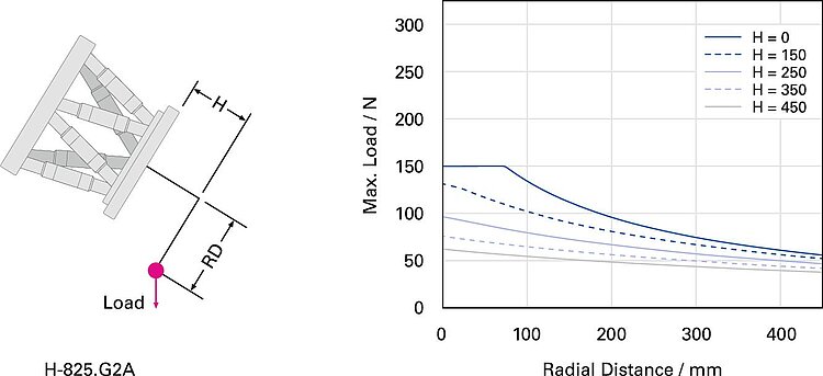 The simulation software simulates the limits of the workspace and payload of a hexapod. Therefore, even before purchasing, you can check whether a particular hexapod model can handle the loads, forces, and torques occurring in an application. For this purpose, the simulation tool takes the position and motion of the hexapod as well as the pivot point and several reference coordinate systems into account.