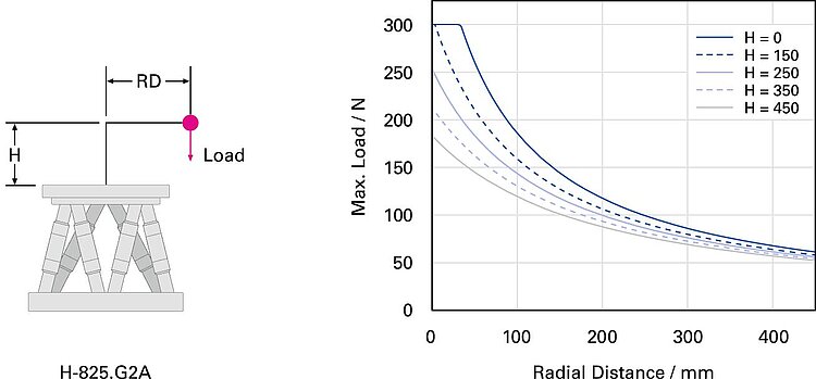 Compact hexapod; brushless DC gear motor; absolute encoder; 30 kg payload; 2.5 mm/s maximum velocity. Connecting cables are not included in the scope of delivery and must be ordered separately.
