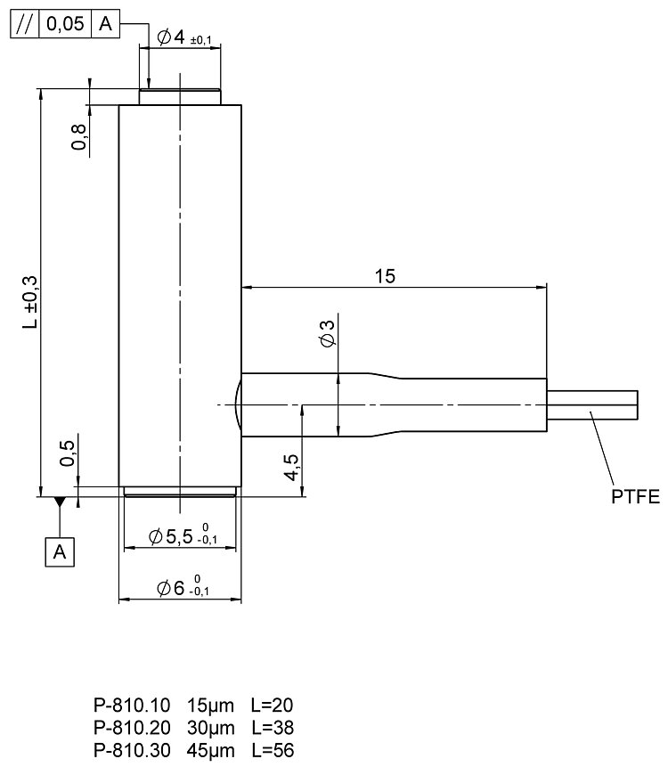 | Length | 20 mm | 38 mm | 56 mm | 22 mm | 40 mm | 58 mm | 76 mm | ±0,3 mm |