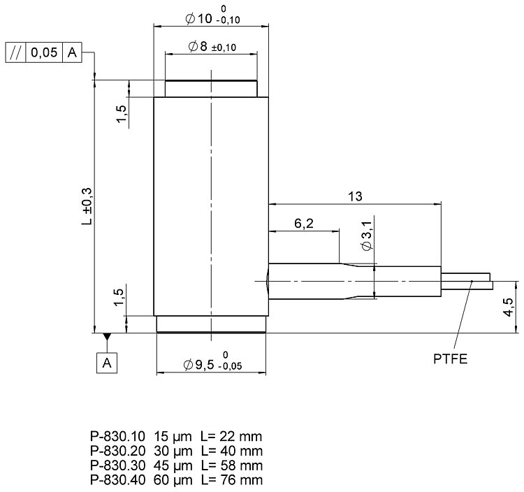 | Positioning | P-810.10 | P-810.20 | P-810.30 | P-830.10 | P-830.20 | P-830.30 | P-830.40 | Tolerance |