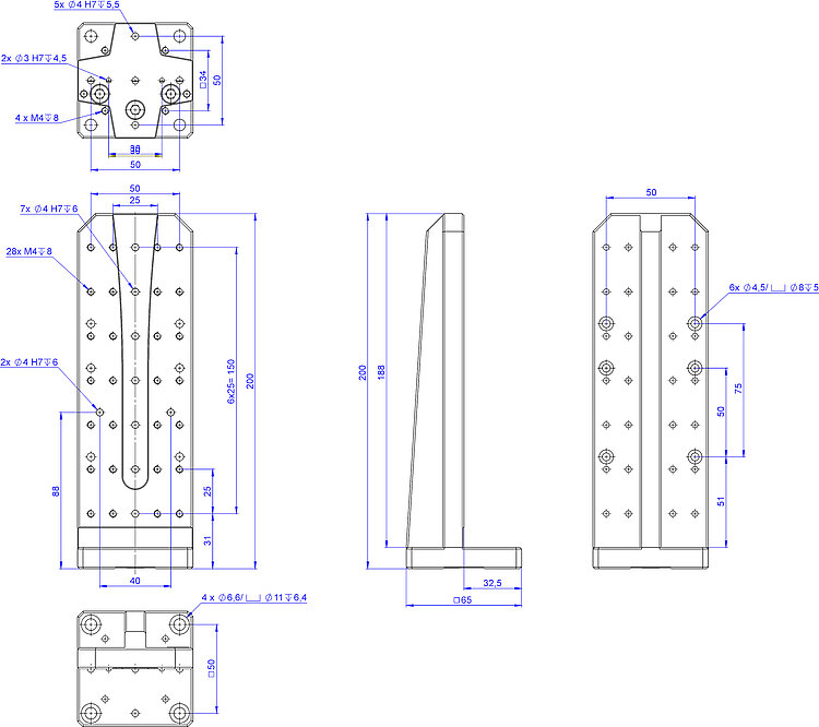 Adapter bracket for vertical mounting of positioners with up to 100 mm width and 300 mm length, vacuum compatible to 10-6 hPa