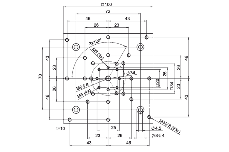 For Horizontal Mount of Stages with PI Standard Hole Pattern