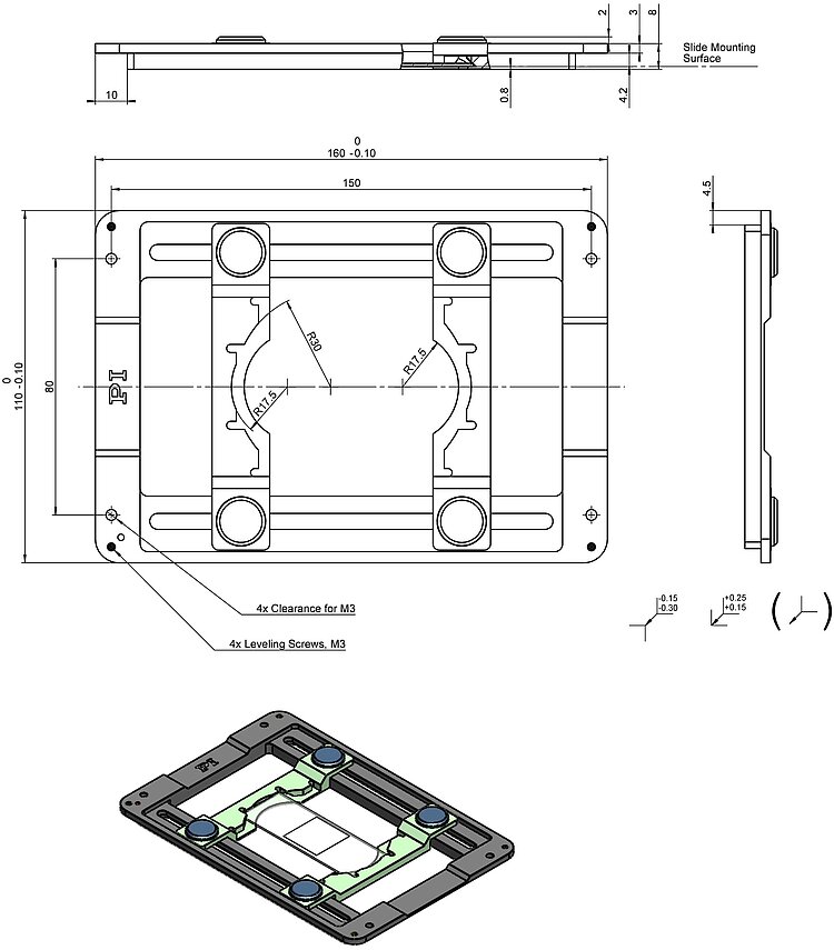 Universal holder for microscope slides and Petri dishes, for PD73Z2COW / PD73Z2ROW PInano® Z piezo scanner systems (compatible with U-780.DOS systems for Olympus microscopes)