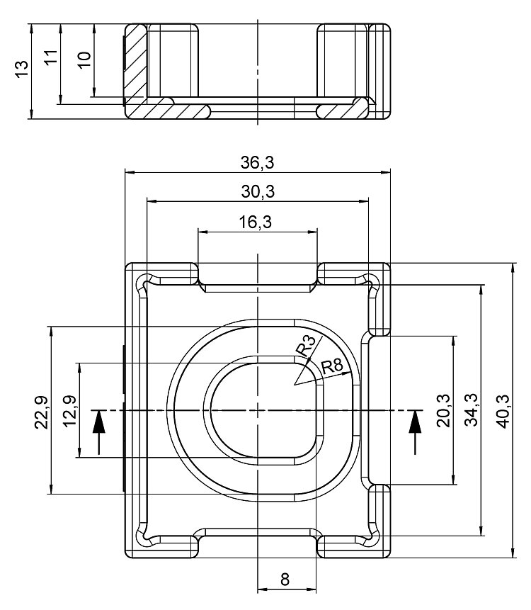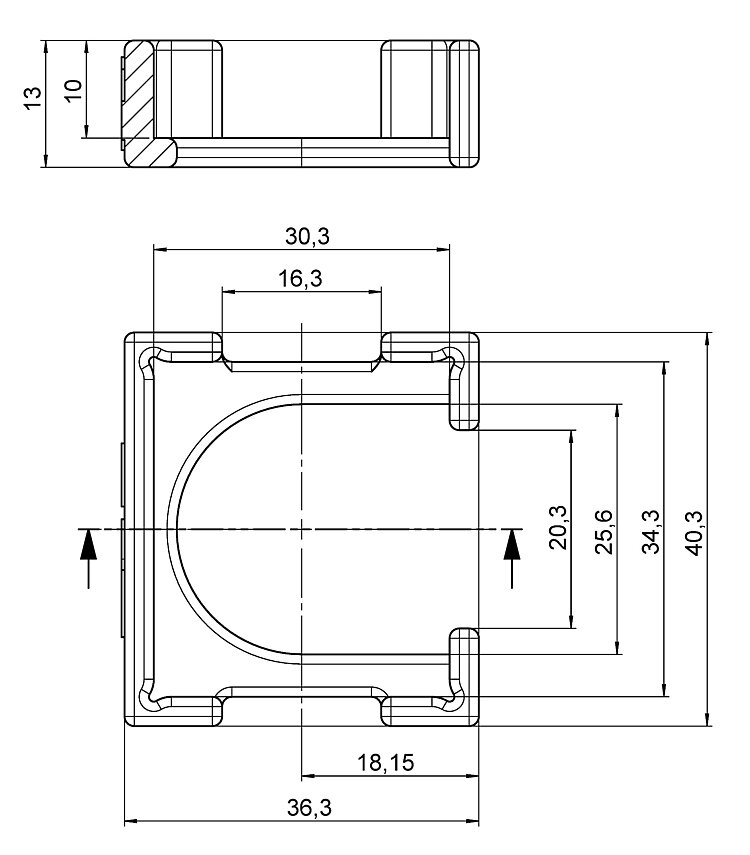 Centering aids can be used for gluing a mirror onto models from the S-335 series supplied without mirrors. The centering aid holds the mirror at the desired position during gluing.
