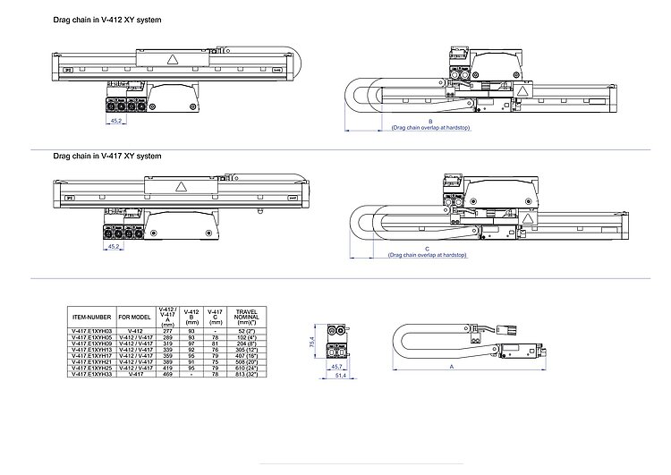 V-417.E1XYHxx Drag Chain for V-41x Positioners